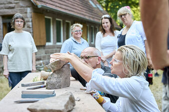 Die vorbereiteten Steine inspirieren den Dialog im Team.