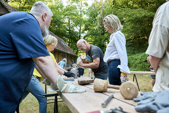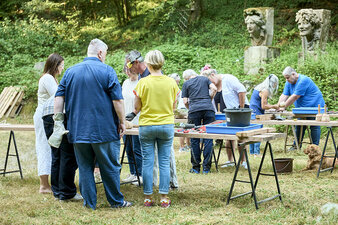 Jetzt beginnt das Tun mit allen Sinnen. Mit Hand und Verstand entsteht die gemeinsame Skulptur.